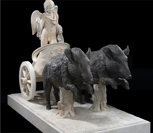 A Roma riapre l’Antiquarium di Villa Albani TorloniaRoma, 14 set. (askanews) – Dal 16 settembre prossimo la Fondazione Torlonia riapre l’Antiquarium, lo spazio all’interno delle Scuderie di Villa Albani Torlonia in cui ha raccolto una selezione di opere recentemente restaurate nei Laboratori Torlonia, grazie al supporto di Bulgari e l’affiancamento della Soprintendenza Speciale di Roma, curata da Carlo Gasparri. Si tratta di un gruppo di sculture esposte in occasione del decennale della Fondazione, celebrato con l’apertura di questo spazio, per mantenere aperto il dialogo con la città di Roma e che ora tornano visibili gratuitamente al pubblico. Tra queste spicca uno spettacolare gruppo con Eros su biga trainato dai cinghiali, originariamente conservati a Villa Albani Torlonia e successivamente nel Museo Torlonia.