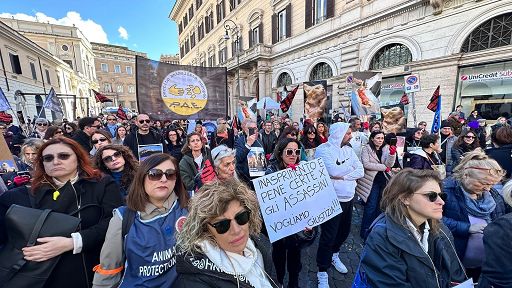 A Roma tutti col nastro arancione per Leone e i diritti degli animaliRoma, 25 feb. (askanews) – Leone chiama e Roma risponde: intensa partecipazione oggi al presidio in piazza Santi Apostoli, dove associazioni animaliste e soprattutto cittadini si sono ritrovati per invocare giustizia per gli animali che non possono difendersi da soli e per chedere l’introduzione di pene più severe per chi uccide, tortura, maltratta gli animali.