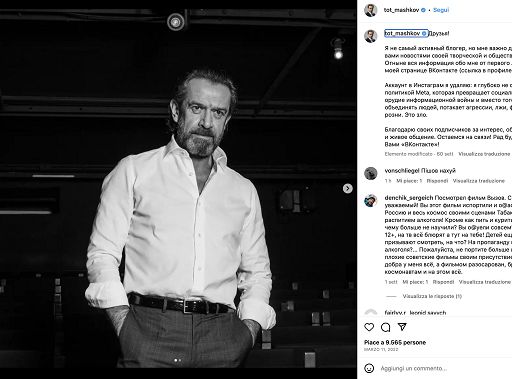 Su Instagram e Telegram, l’attore ha chiesto l’annessione illegale delle regioni di Luhansk, Donetsk, Kherson e Zaporizhzhia alla Federazione Russa, scrivono da Kiev. Cioè, ha chiesto un cambiamento dei confini del territorio dell’Ucraina. Mashkov ha anche giustificato e riconosciuto legittima l’aggressione armata della Russia contro l’Ucraina, si aggiunge. I testi da lui pubblicati sono considerati dalla giustizia ucraina effettivamente di natura propagandistica e giustificavano l’invasione russa.