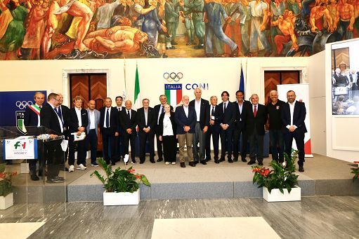 La Federhockey fa 50 anni. Presidente Mignardi: “Progettiamo futuro”Roma, 30 set. (askanews) – Si è svolta nel pomeriggio di venerdì, presso il Salone d’Onore del Coni, in Roma, la cerimonia di celebrazione del Cinquantenario della Federazione Italiana Hockey.