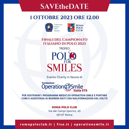 Tanti i volti noti della cultura, dello spettacolo e dello sport che prenderanno parte all’iniziativa, tra cui la figlia del premio Nobel per la fisica, Elettra Marconi, la conduttrice radiofonica Manola Moslehi, la conduttrice e opinionista tv, attivista per i diritti umani e delle donne, Claudia Conte, l’attore Roberto Ciufoli e molti altri ancora. Tra i momenti più emozionanti della giornata, sicuramente quello che vedrà protagonista la Fanfara del 4° Reggimento Carabinieri a cavallo, che per l’occasione eseguirà alcuni brani i cui ritmi sono ispirati dalle andature al passo, al trotto e al galoppo del cavallo e che costituiscono la colonna sonora del celeberrimo Carosello Storico dell’Arma dei Carabinieri. Infine, come di consueto, il Polo for Smiles avrà anche un lato glamour con la competizione “Ladies Hat”, che premierà le spettatrici con i copricapi più bizzarri e fantasiosi. Operation Smile è un’organizzazione internazionale, senza scopo di lucro, specializzata nella chirurgia e nella cura delle labiopalatoschisi. Dal 1982, cura ed assiste gratuitamente, bambini e adulti nati con malformazioni cranio-maxillo-facciali per donare loro il sorriso e un futuro. Grazie a migliaia di volontari medici e personale sanitario in tutto il mondo, fornisce cure, assistenza sanitaria e competenze mediche dove il bisogno è maggiore. La Fondazione Operation Smile Italia ETS supporta l’impegno dell’Organizzazione internazionale di cui fa parte, promuove iniziative di sensibilizzazione, ricerca e raccolta fondi per garantire il diritto di ogni bambino e di ogni persona di accedere a cure gratuite, sicure e di qualità, ovunque nel mondo. https://operationsmile.it/