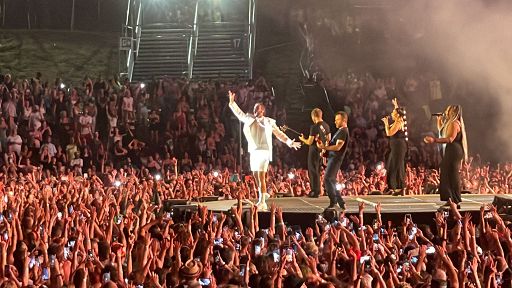 La spianata del Circo Massimo è completamente piena: si parla di oltre 40mila persone. Mengoni, giacca e bermuda bianchi, è arrivato passando tra due ali di folla, per poi attraversare l’area e salire sul palco. “Grazie, Roma, di tutto”, ha esordito Mengoni che, durante la serata, sarà accompagnato da ospiti d’eccezione: Samuele Bersani, Bresh, Elodie e Gazzelle.