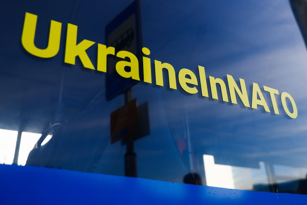 “L’Ucraina si candida per entrare nella Nato! Le grandi potenze mondiali avranno abbastanza volontà e coscienza per onorare la promessa fatta nel 2008 di invitare l’Ucraina a diventare un membro a pieno titolo della Nato?”, scrivono gli organizzatori dell’evento. In piazza giovani, adulti, famiglie con bambini: tutti con la bandiera giallo-blu e con striscioni e cartelli “Slava Ukraine”.