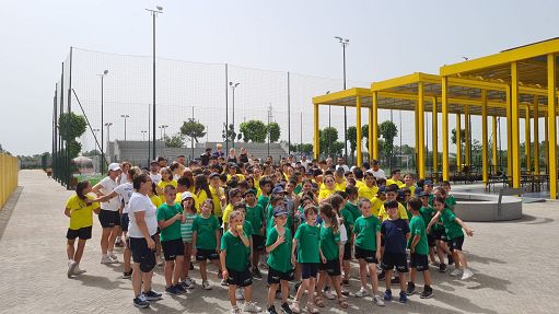 Campioni italiani di padel in visita al “Pino Daniele” di CaivanoRoma, 21 giu. (askanews) – Sarà stato il ciuffo biondo di Giulio o lo stupore di vedere dei veri campioni scendere in campo insieme a loro e giocare a padel. Ma la felicità dei trecento bambini degli Illumina Camp di Caivano è stata straripante e contagiosa: non appena Giulio Graziotti, Riccardo Sinicropi, Giorgia Marchetti e Chiara Pappacena sono arrivati al centro sportivo “Pino Daniele” è scattato un grande applauso. Poi una pioggia di domande sul padel e su di loro. E subito dopo tutti in campo a provare una disciplina che ha contagiato tutti, ma proprio tutti.