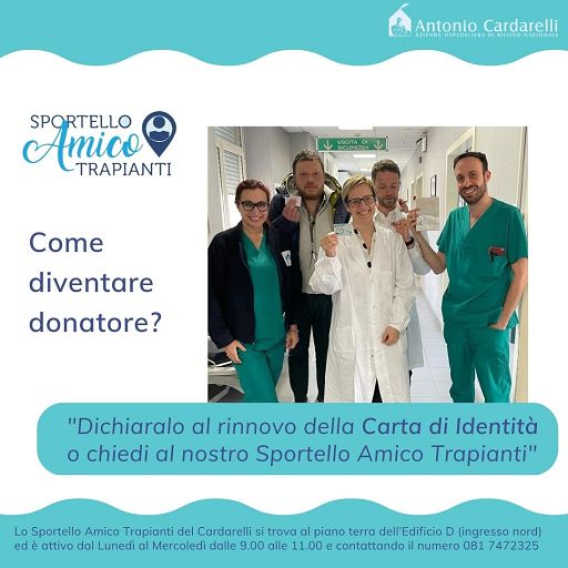 L’Ospedale napoletano è primo in Campania per raccolta di consensi alla donazione, facendo registrare numeri in linea con le maggiori strutture italiane: nel 2022 sono stati 24 i prelievi di organo effettuati presso il Cardarelli, si tratta di circa il 31 per cento del totale dei decessi verificatisi per lesioni cerebrali presso la struttura napoletana. Inoltre nel 2022 sono stati effettuati 71 trapianti di Midollo, di cui 40 autologhi e 31 allogenici. Per maggiori informazioni sulla donazione degli organi e dei tessuti è possibile contattare lo Sportello Amico Trapianti del Cardarelli dal Lunedì al Mercoledì dalle ore 9.00 alle ore 11.00 al numero 081 747 2325 o recandosi al piano terra dell’Edificio D (ingresso nord). È possibile inoltre consultare il sito web www.ospedalecardarelli.it o le pagine Facebook o Instagram Ospedale Cardarelli.