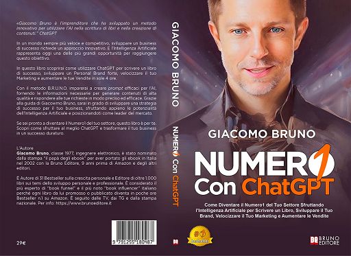Il libro di Bruno è un esempio concreto di come l’intelligenza artificiale possa supportare la scrittura e la creatività umana, permettendo di ottenere risultati di grande qualità in tempi ridotti. Il libro “Numero1 con ChatGPT” è disponibile sul sito www.brunoeditore.ai/libro Giacomo Bruno, classe 1977, ingegnere elettronico, è stato nominato dalla stampa “il papà degli ebook” per aver portato gli ebook in Italia nel 2002 con la Bruno Editore, 9 anni prima di Amazon e degli altri editori. È Autore di 31 bestseller sulla crescita personale e Editore di oltre 1.000 libri sui temi dello sviluppo personale e professionale. È considerato un esperto di “book funnel” e di ChatGPT, nonché il più noto “book influencer” italiano perché ogni libro da lui promosso o pubblicato diventa in poche ore Bestseller n.1 su Amazon. È seguito dalle TV, dai TG e dalla stampa nazionale. Per info: https://www.brunoeditore.it