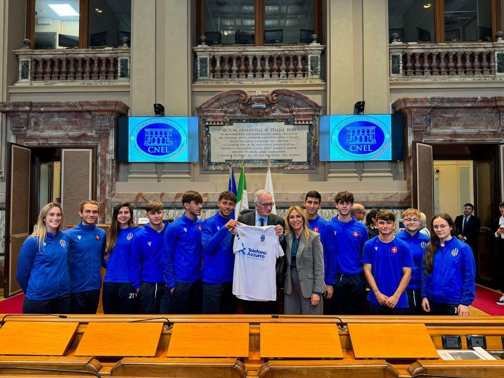 Montespaccato calcio con Telefono Azzurro per diritti infanziaRoma, 15 nov. (askanews) – Il logo della più autorevole istituzione di difesa dei minori campeggerà sulle maglie del Gruppo Sportivo Montespaccato. Un nuovo e prestigioso riconoscimento va a rafforzare l’impegno sociale del Gruppo Sportivo Montespaccato. È quello che viene dal Telefono Azzurro, istituzione benemerita nel settore della tutela dei diritti dell’infanzia fondata nel 1987 dal Professor Ernesto Caffo. Oggi a margine dell’evento svoltosi presso la sede del Consiglio Nazionale dell’Economia e del Lavoro sul tema “Il futuro dell’infanzia tra nuovi scenari e risposte concrete”, una delegazione delle atlete e degli atleti del Montespaccato Calcio, dopo aver partecipato ai lavori attraverso il racconto dell’esperienza di “Talento & Tenacia” quale strumento di inclusione e promozione dei diritti di cittadinanza di ragazze e ragazzi in contesti urbani difficili, ha consegnato al Prof. Caffo la maglia di gara ufficiale contrassegnata dal logo di “Telefono Azzurro”.
