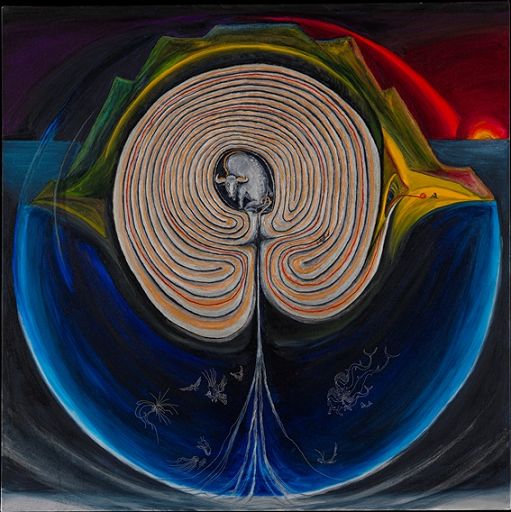La mostra offre una pregiata combinazione di disegni di architettura eseguiti per le serre dell’Orto Botanico di Napoli, e poi opere pittoriche in cui il labirinto si atteggia come una voluta, un cervello, un intestino o un utero quest’ultimo innegabilmente legato metaforicamente al ventre di Napoli. Secondo la curatrice Cynthia Penna “una certa somiglianza nella forma del labirinto con quella del cervello umano, induce a riflettere e a soffermarsi sui concetti di formazione ed elaborazione del pensiero, di introspezione e di temporalità. Il labirinto come cervello e il cervello come labirinto: un dualismo fatto di convergenza, ma soprattutto un comun denominatore costante che è dato dai concetti di tempo, accesso, percorso e trasformazione. Il labirinto consiste sempre in un attraversamento; vi si entra e se ne esce senza mai arrestarsi, in un andare avanti che ripercorre l’essenza della vita nel suo aspetto di irreversibilità di una retrocessione”.