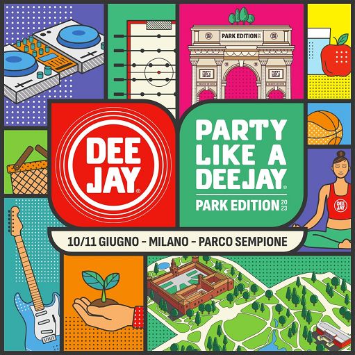 Il palco dell’Arco della Pace si accende sabato 10 giugno, dalle ore 18.00 alle 21.00, con i coinvolgenti dj set di MACE, Zef e Marz e Bassi Maestro. Domenica 11 giugno la serata evento dove sono previste dalle ore 17.00 le esibizioni live di alcuni degli artisti più amati del momento: Annalisa, Ariete, Articolo 31, Blanco, Boro Boro, Bresh, Clara, Coma_Cose, Elodie, Fedez, Francesca Michielin, Gaia, gIANMARIA, Lazza, Madame, Mr. Rain, Oriana Sabatini, Paola & Chiara, Pinguini Tattici Nucleari, Rhove, Rondodasosa, Rosa Chemical, Sangiovanni, Tananai, Tommaso Paradiso, Wayne. Tra una performance e l’altra, si alternano gli speakers della radio, mentre arricchiscono la serata i dj set di Linus, Nicola Savino e Duappo, il live set di Nikki e DJ Aladyn e il gran finale con Albertino. Ma Party Like A Deejay prende il via già dalle ore 10.00 di sabato all’interno di Parco Sempione. Considerato da sempre il ‘giardino della radio’, il parco diventa per due giorni teatro di un ricco palinsesto di attività suddivise nelle 6 aree tematiche: Speakers’ Corner, Area Sport, Area Giochi senza Wi-Fi, Area Family&Kids, Casa Deejay e Ricordi Stampati.