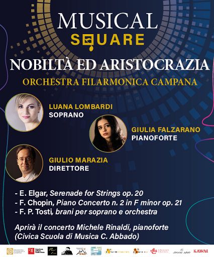 Al Teatro Lirico ‘Giorgio Gaber’ torna ‘Musical Square’Milano, 5 giu. (askanews) – Giovedì 8 Giugno 2023 alle ore 20.00 l’Orchestra Filarmonica Campana diretta dal M° Giulio Marazia debutterà a Milano nel prestigioso Teatro Lirico Giorgio Gaber per il Festival Musical Square con il concerto Nobiltà e Aristocrazia. In programma musiche di Edward Elgar, Frederic Chopin e Francesco Paolo Tosti. La rassegna è curata dal direttore artistico M° Giuliano De Angelis con la sinergia del responsabile del comparto musica classica del Teatro Lirico Roberto Favaro e il coordinamento artistico della violinista russa Yulia Berinskaya. Il concerto si apre con la Serenata per archi in mi minore op. 20 di Edward Elgar, considerato tra i compositori inglesi più rappresentativi del periodo tardoromantico e molto sensibile alle influenze del sinfonismo di derivazione tedesca. Il lavoro è contraddistinto da un cordiale e affettuoso lirismo, rivelatore di uno stile creativo dai gusti raffinati e aristocratici, nel contesto di un discorso fluido scorrevole e secondo un tipo di scrittura formalmente chiara e sentimentalmente comunicativa. A seguire il concerto per pianoforte e orchestra in fa minore n. 2 op. 21 di Frederic Chopin, nella versione cameristica per archi e pianoforte. Scritto durante il periodo giovanile, prima di lasciare Varsavia, sotto l’influenza d’un ambiente musicale un po’ provinciale e superficiale, che nel concerto vedeva soltanto l’occasione in cui un solista di cartello poteva esibire il suo scintillante virtuosismo e la sua accattivante cantabilità. Dunque non c’è da meravigliarsi se i temi e l’architettura di questo concerto recano tracce di questo tipo di concertismo: tuttavia il non ancora ventenne compositore lascia emergere anche in questi lavori giovanili più d’una anticipazione della sua scrittura pianistica, del suo fascino di natura nobile e melodico e del suo colorito armonico, inconfondibili. Il concerto sarà interpretato dalla giovane Giulia Falzarano, per la prima volta tra i solisti dell’OFC. Chiudono il concerto le liriche da camera di Francesco Paolo Tosti, Non T’amo più, Malia e A’ Vucchell, nella versione per voce e archi e interpretate dal soprano Giusy Luana Lombardi. Tosti è stato un compositore divenuto celeberrimo per le sue liriche da camera, nonché protagonista dei più importanti salotti artistici dell’epoca e insegnante di canto della principessa Margherita di Savoia. Le sue romanze di gusto raffinato, espressione di un’epoca e di una società, gli diedero fama europea. Sul podio dell’orchestra il direttore musicale Giulio Marazia. Ha studiato corno, pianoforte, didattica della musica, composizione e direzione d’orchestra presso i Conservatori di Salerno, Bari e Milano, dove si è laureato con il massimo dei voti. Fra i suoi insegnanti Nicola Samale, Piero Bellugi, Vittorio Parisi, Gianluigi Gelmetti e Paolo Arrivabeni. Fra le orchestre dirette: Pomeriggi Musicali, Orchestra del Conservatorio di Milano, Brooklyn Chamber Orchestra, Opera Royal de Wallonie, Venice Chamber Orchestra, Orchestra Filarmonica Pugliese, Orchestra Pergolesi, Israeli Moshavot Chamber Orchestra, Orchestra Sinfonica di Asti, Orchestra Conservatorio di Foggia, Orquestra Simfonica Julia Carbonell de Lleida, Kodaly Philarmonic Orchestra, Orquestra Sinfonica do Teatro Nacional Claudio Santoro di Brasilia.