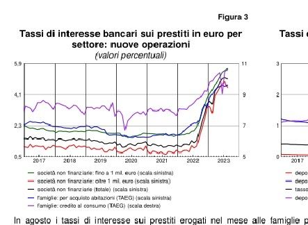 I tassi sui prestiti bancari in Italia stanno aumentando da mesi sulla scia dei rialzi ai tassi di riferimento operati dalla Bce: dall’estate del 2022 l’istituzione Ue ha complessivamente inasprito i riferimenti di 450 punti base (4,50 punti percventuali). I dati sui livelli raggiunti ad agosto dai tassi di interesse sui prestiti bancari nella Penisola sono stati riportati da Bankitalia nella statistica “Banche e moneta: serie nazionali”.