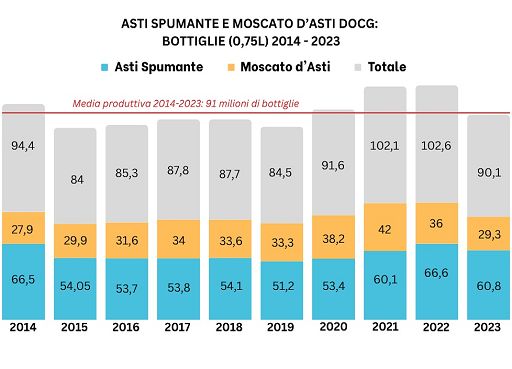 Consorzio Asti Docg: nel 2023 -11,8% di bottiglie prodotte, 90,1 mln