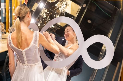 “Ho voluto vedere i pas de deux, che costituiscono il fulcro dei programmi di Les Étoiles, come la nostra partita di calcio: un esempio di come gli esseri umani siano tutti partner che hanno bisogno gli uni degli altri, per sostenersi a vicenda e spronarsi a migliorare di continuo”, ha spiegato ancora Cipriani. Idealmente al fianco di Pistoletto, sul palcoscenico della Sala Santa Cecilia il 4 e 5 gennaio 2025 le étoiles daranno collettivamente vita alla Danza della pace preventiva. A fine novembre, in occasione del gala a Milano, la Fondazione Pistoletto Cittadellarte presentò nel foyer del Teatro Arcimboldi un “quadro specchiante” ideato da Pistoletto sul quale le étoiles e gli spettatori apposero le loro firme. L’opera sarà presente all’Auditorium Parco della Musica Ennio Morricone anche il 4 e 5 gennaio: verrà firmata dalle 19 stelle; gli spettatori che verranno a vedere gli spettacoli nella Sala Santa Cecilia potranno diventare anch’essi co-creatori dell’opera apponendovi la propria firma, come dire: una firma per la pace preventiva. Proprio come la danza che non è mai uguale a se stessa, anche il “quadro specchiante” sarà in continuo cambiamento: con ogni firma sarà diverso da prima e il riflesso del firmatario, che per un istante è il momento centrale dell’opera, c’è… e poi non c’è più. Alla fine, dalla moltitudine di firme, emergerà il celebre simbolo “danzante” del Terzo Paradiso di Michelangelo Pistoletto.