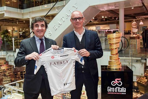 Eataly entra nella famiglia del Giro d’Italia come sponsor maglia biancaMilano, 23 apr. (askanews) – Eataly entra a far parte della famiglia del Giro d’Italia come top sponsor della Maglia bianca, destinata al miglior giovane. A presentare l’accordo, nella la sede di Eataly Milano Smeraldo, Urbano Cairo, presidente di Rcs MediaGroup, e Andrea Cipolloni, group Ceo di Eataly.