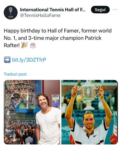 Sarà Sidney, si legge in una nota, a ospitare il torneo, con Rafter – che ovviamente non ha punteggio nel ranking Fip – che giocherà in coppia con il connazionale Luke Morland, che di punti ne ha 2 ed è numero 954 del mondo. Ma c’è da giurarci, il pubblico sarà tutto per loro. Rafter, dopo aver chiuso la sua carriera agonistica – tra i successi, anche la Coppa Davis del 1999, anno in cui divenne per una settimana numero 1 del ranking ATP -, vive lontano dai riflettori: cercando sui social, non esistono profili Instagram collegati al suo nome, così come rare sono state le interviste rilasciate. Indimenticati, però, il suo gioco d’attacco, il suo serve and volley (che potrebbe fargli comodo nel padel) e anche la crema solare applicata sotto gli occhi e sul naso. La curiosità di vederlo all’opera nel padel è enorme, e non sarà il primo giocatore di tennis arrivato in fondo a uno Slam a cimentarsi con la ‘pala’: è già successo con il polacco Jerzy Janowicz, semifinalista a Wimbledon nel 2013 e stabilmente nel circuito FIP di padel. Adesso tocca a Rafter.