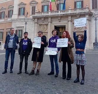 Flashmob di Volt in piazza Montecitorio contro astensionismoRoma, 27 feb. (askanews) – Questa mattina, davanti Montecitorio, si è tenuto un Flashmob organizzato da alcuni attivisti ed esponenti di Volt – partito paneuropeo progressista – per manifestare contro il pacchetto di misure restrittive, in discussione in questi giorni in Parlamento, rispetto alla partecipazione al voto e all’accesso alla politica.