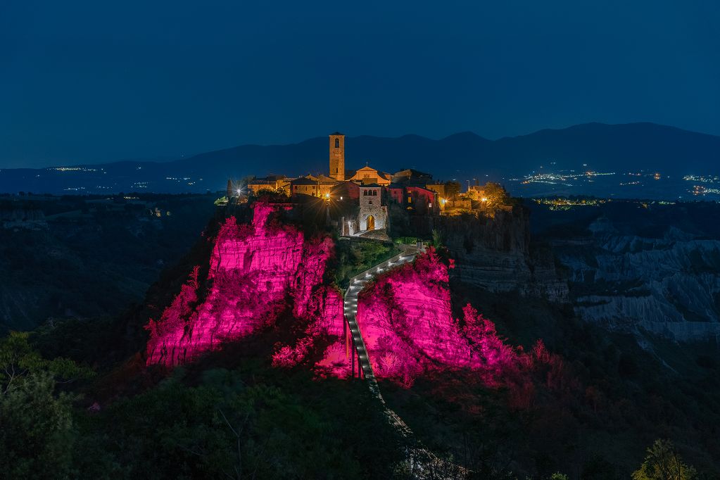Giornata patologie eosinofile, a Bagnoregio illuminata di magenta la Civita