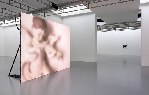 La parola ‘glassa’ deriva etimologicamente dal francese ‘glace’; e si riferisce, nel contesto della pasticceria, al rivestimento di zucchero e altri liquidi utilizzato a caldo per ricoprire o decorare le torte: così dolce da diventare quasi nauseante, così liscia e spessa da nascondere qualsiasi asperità sottostante. Inoltre, la parola richiama il ghiaccio, qualcosa di freddo come solo la morte può essere e in grado di preservare le salme. Circa 1000 metri quadrati di spazio vengono, quindi, trasformati da Marcon in un apparato cinematografico; grazie ad una mirata illuminazione con lucernari a soffitto il pubblico è immerso in un’esperienza unica, bilanciata sul dialogo tra il trattamento del vuoto, della luce e delle ombre. Coreografando il movimento dei visitatori nello spazio, considerato l’uso del vuoto, dello scorrere del tempo, dei cambiamenti di luce e della potenza delle immagini in movimento, Diego Marcon allestisce una macchina esperienziale dove tutto è sotto il suo meticoloso controllo.