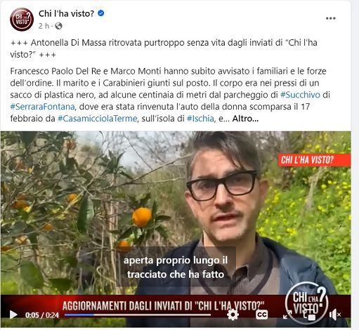 Gli inviati di “Chi l’ha visto?” hanno trovato il corpo della donna scomparsa a Ischia