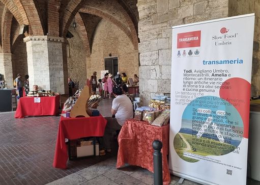 Il Mercato si svolge grazie anche alla collaborazione del Comune di Todi, con cui a ottobre Slow Food ha siglato un protocollo d’intesa che ha l’obiettivo di migliorare la qualità della vita urbana della città. “Todi Slow Life”, questo il nome del progetto, intende incidere su diversi aspetti delle politiche alimentari: oltre all’attivazione del mercato contadino, l’intenzione è di coinvolgere le scuole nel progetto “Orti Slow Food”, di mettere a punto percorsi di formazione per ristoratori e cuochi e di sviluppare il settore dell’accoglienza turistica legata all’enogastronomia e alla cultura del cibo. La Transameria, a cui si ispira il Mercato della Terra di Todi, è il nome di uno degli itinerari di Slow Food Travel, i percorsi disegnati dall’associazione della Chiocciola per viaggiare lentamente, attraverso saperi e sapori locali. Nel caso della Transameria, la proposta turistica attraversa l’Umbria meridionale, tra Todi e Amelia, passando per Avigliano Umbro e Montecastrilli, lambendo il Tevere e i monti Amerini.