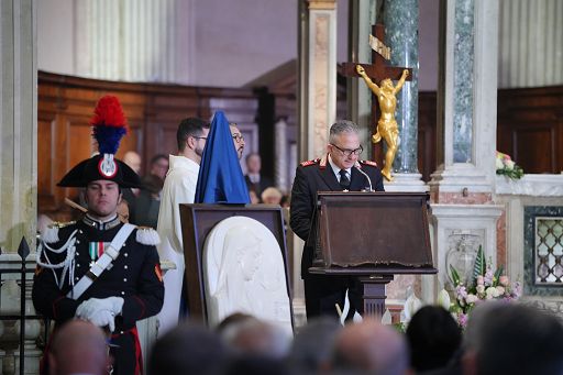 Il Comandante Generale, Gen. C.A. Salvatore Luongo, ha ricordato come “la scelta della Madonna Virgo Fidelis, quale protettrice celeste dell’Arma, è evidentemente ispirata alla fedeltà, insieme di virtù e impegno morale di ogni soldato che serve la Patria, nonché valore peculiare dell’Arma dei Carabinieri, sintetizzato nel motto Nei secoli fedele”. Il Gen. C.A. Luongo ha concluso preannunciando la consegna della Targa di Benemerenza Icaro, attribuita, per l’anno 2023, alla memoria del Car. Sc. Vittorio Iacovacci, Medaglia d’Oro al Valore Militare, caduto il 22 febbraio 2021 unitamente all’Ambasciatore Luca Attanasio a Goma, nella Repubblica Democratica del Congo.