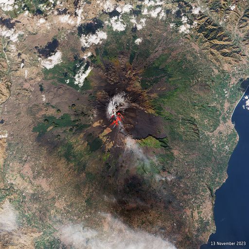 L’Esa pubblica la foto dell’eruzione dell’EtnaRoma, 15 nov. (askanews) – L’Esa pubblica una immagine catturata il 13 novembre dalla missione del programma Copernicus Sentinel-2, elaborata utilizzando le bande nell’infrarosso a onde corte della missione per mostrare il flusso lavico in un rosso brillante, dell’eruzione dell’Etna. Situato a circa 3329 m di altezza, l’Etna è in uno stato di continua attività. Cenere e nubi create a causa delle frequenti eruzioni rappresentano una minaccia per la vicina città di Catania, situata sulla costa siciliana.