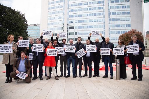 Lombardia, flash mob Pd contro tagli a fondi assistenza disabiliMilano, 21 mar. (askanews) – Il gruppo regionale del Pd in Lombardia ha messo in atto oggi un flash mob sotto la sede del Consiglio regionale, in piazza Duca d’Aosta, per protestare contro i tagli ai contributi per le persone con disabilità in condizioni gravi e gravissime, deciso dalla giunta regionale a fine dicembre e solo parzialmente corretto nei giorni scorsi, dopo le numerose proteste delle associazioni e delle forze del centrosinistra in Consiglio regionale. I consiglieri dem, guidati dal capogruppo Pierfrancesco Majorino e insieme al segretario metropolitano Alessandro Capelli, hanno esposto una grande “0,03%”, la quota di risorse rispetto al bilancio regionale che manca per inertizzare i tagli e dare maggior sostegno a queste persone, in particolare per i loro caregiver, gli assistenti personali che prestano assistenza continua. La scritta, in carta rossa, era ben visibile da tutti i piani di palazzo Pirelli. A seguire gli esponenti dem hanno esposto di nuovo i cartelli che avevano già esposto durante le ultime due sedute di Consiglio, con scritto “Per la destra la disabilità vale meno dello 0,03%”.
