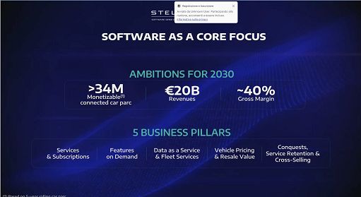 Stellantis: ricavi software più che triplicati, 20 mld al 2030