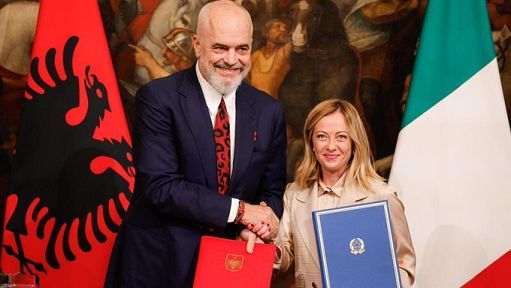 “Grazie, sono onorato di essere qui e avere la possibilità di comunicare in un’altra famiglia politica”, ha detto Rama, ospite di Atreju, la manifestazione organizzata da Fratelli d’Italia, “E’ sempre importante non dimenticare che alla fine la qualità della vita comune, la qualità della democrazie non si basa su quanto siamo d’accordo, ma in che modo siamo capaci di gestire i nostri disaccordi. A me sembra che si è fatto un rumore sproporzionato sulla storia di questo accordo, che è un accordo secondo me naturalissimo tra due Paesi con nomi diversi ma che io vedo come due parti dello stesso popolo”. “Per noi l’Italia è sempre stata parte di noi, anche quando non potevamo arrivare dall’altra sponda del mare”, ha aggiunto Rama, “Per quello che l’Italia ha mostrato a noi, dal primo momento del riabbraccio dopo la lunga e terribile storia dell’isolamento comunista, è abbastanza per capire che “nessuno si deve meravigliare, sorprendere, spaventare quando noi facciamo accordi di comune intendimento delle cose e di comune beneficio. Per noi è sempre un onore dare una mano quando l’Italia ce lo chiede e sarà sempre un privilegio contarsi come l’amico speciale dell’Italia. Penso che noi dobbiamo fare di tutto per essere il Paese fratello d’Italia”.
