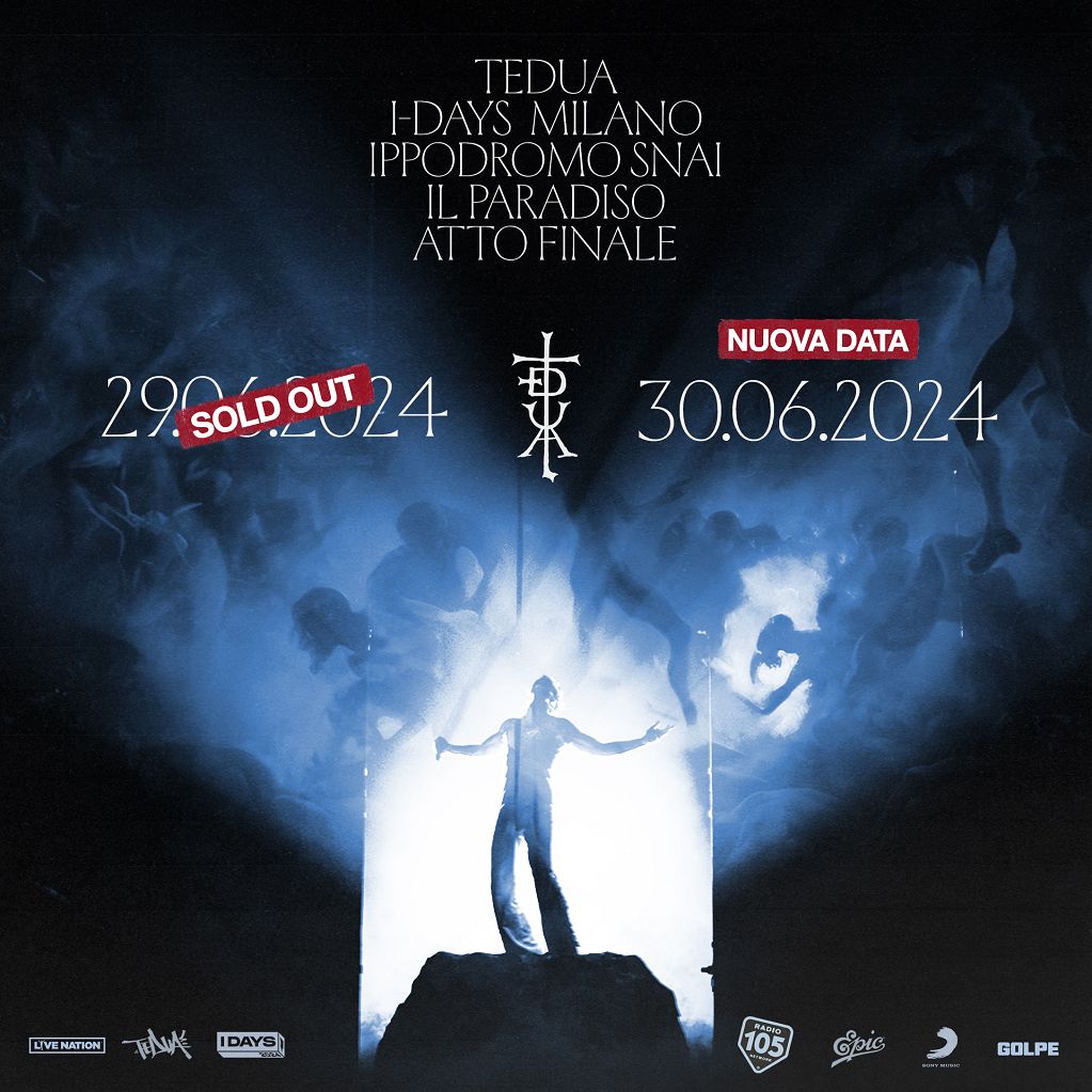 Tedua è il primo artista della storia degli I-Days a raddoppiare una data, record che si aggiunge ad uno straordinario anno di live, che lo ha visto polverizzare a oggi un totale di 80mila biglietti a Milano, sommando i biglietti venduti nella prima data all’Ippodromo SNAI alle 4 date al Mediolanum Forum durante La Divina Commedia Tour che si sono tenute tra novembre e dicembre 2023. Non finiscono le sorprese per i fan di Tedua, che dopo aver annunciato la sua partecipazione come ospite alla 74esima edizione del Festival di Sanremo durante la prima e l’ultima sera in collegamento con il Teatro Ariston dal palco galleggiante a bordo della nave Costa Smeralda, nei prossimi mesi svelerà i nomi degli artisti presenti con lui sul palco dell’Ippodromo nei due live più importanti della sua carriera.