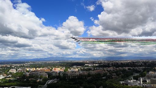 Venerdì 17 maggio, alle 15:30 circa, i velivoli MB339PAN delle Frecce Tricolori dell’Aeronautica Militare sorvoleranno gli storici campi in terra rossa del Foro Italico di Roma stendendo per l’occasione il Tricolore più lungo del mondo sugli Internazionali BNL d’Italia. Il sorvolo delle Frecce Tricolori sul villaggio romano di uno dei più importanti tornei di tennis in terra rossa suggella la collaborazione tra l’Aeronautica Militare e l’organizzazione del torneo. Grazie ad un accordo tra la Forza Armata e Sport e Salute, infatti, personale meteorologico sta fornendo, per la prima volta nella storia del torneo, le previsioni meteo in tempo reale per tutta la durata della competizione tennistica internazionale.