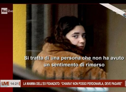 La donna è stata intervistata telefonicamente dalla trasmissione Ore 14 in onda su Rai 2 e condotta da Milo Infante. “No, assolutamente, non l’ho più sentita – ha spiegato la donna – e neanche ho avuto contatti coi genitori, non esiste, non ho niente da dirle, non voglio neanche sapere se ha capito che ha sbagliato, non avrà mai il mio perdono”. “Voglio solo che paghi per quello che ha fatto – ha concluso -; se mi mi fa male vederla di nuovo qui? Direi di sì”.