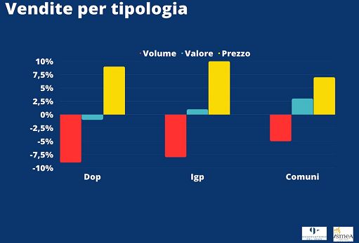 In generale, la dinamica più sfavorevole coinvolge, oltre i vini fermi a denominazione, anche gli Igp (volumi a -8,4%), mentre i vini comuni si fermano a -4,6%. Più pesanti le perdite per i vini rossi, che cedono l’8,2% volumico contro il -5,6% dei bianchi e il -11,2% dei rosati. Sopra la media la contrazione dei vini bio (-8,6%). A livello di canali, i più in sofferenza sui volumi risultano i discount (-10%), a fronte di iper e super che chiudono il trimestre rispettivamente a -4% e -5%. Profondo rosso per l’e-commerce: nonostante il sostanzioso taglio dei prezzi, le vendite online segnano a marzo -19,6%. Andando nel dettaglio dei vini IG più venduti in Gdo, troviamo picchi negativi del -9% per il Chianti, -14% per il Montepulciano d’Abruzzo, -20% per la tipologia Salento, -18% per il Nero d’Avola Sicilia, -20% per la Bonarda oltrepadana, -13% per la Barbera piemontese e -9% per il Lambrusco Emilia e il Cannonau di Sardegna. Stabili, tra i top seller, le Igt Terre siciliane e Puglia, in leggera contrazione Valpolicella e Dolcetto piemontese (-5%), mentre l’unico tra i big che si conferma in buona salute, anzi in costante crescita è il Vermentino di Sardegna, con +1% in volume. Molte le denominazioni che registrano aumenti di listino sopra la media nazionale: Montepulciano +13%, Barbera piemontese +11%, Nero d’Avola a +13%, Bonarda a +12% e Verdicchio a +20%.