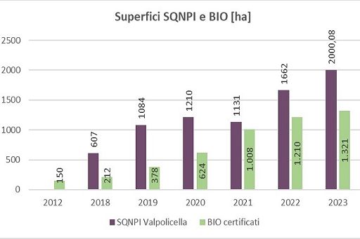 “Si tratta di un risultato raggiunto in un solo decennio, frutto di un’attenzione costante e crescente al rispetto del territorio e dell’ambiente” ha commentato il presidente del Consorzio, Christian Marchesini, sottolineando che “a questi duemila ettari si aggiungono poi quelli a conduzione biologica certificata, per un totale di oltre 3.320 ettari green, complessivamente il 16% in più dello scorso anno”. E anche il vigneto biologico ha registrato tra il 2022 e il 2023 un aumento del 9%, portando la Denominazione a quota 1.321 ettari bio, con una crescita monstre decennale del 781% (erano 150 nel 2012). Con oltre 2.400 aziende tra viticoltori, vinificatori e imbottigliatori, il territorio di produzione della Denominazione si estende in 19 Comuni della provincia di Verona, dalla Valpolicella fino alla città scaligera, e detiene il primato del vigneto urbano più grande dello Stivale: 8.600 ettari di vigneto.